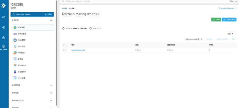 DA面板自带中文。在这里可以进行一键安装主流程序、创建数据库、在线解压等操作。美中不足没找到在哪修改PHP版本号。