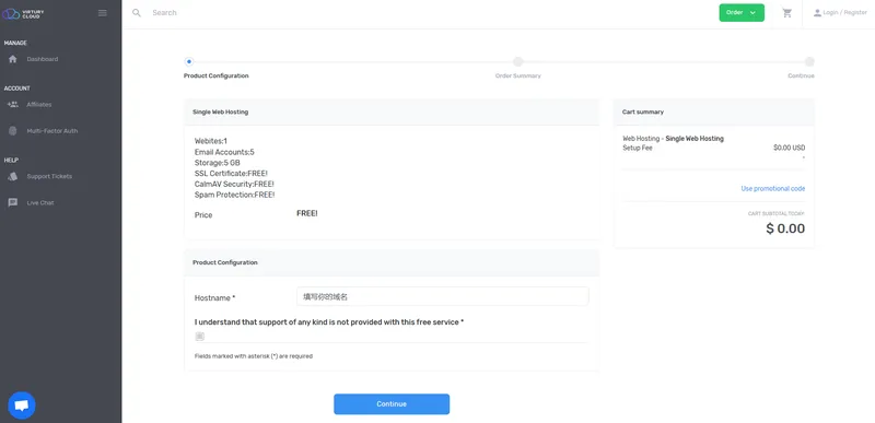 注册网址:https://virtury.com/web-hosting