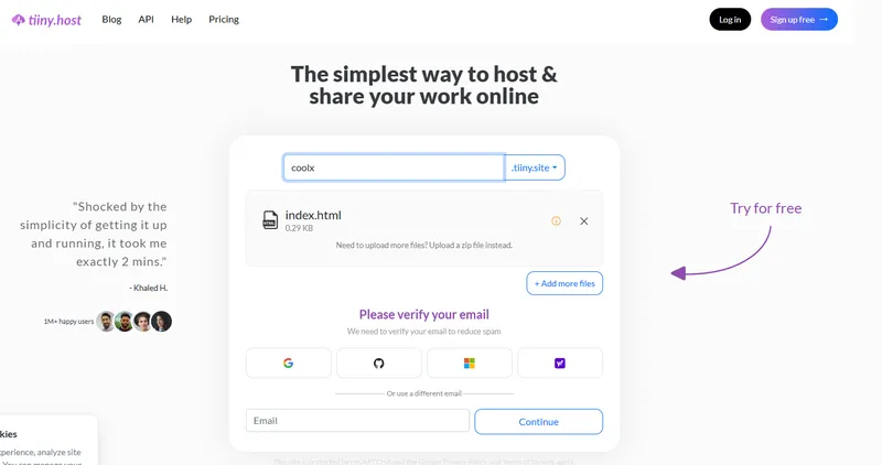 注册网址:https://tiiny.host/