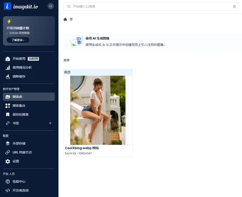 ImageKit于2016年成立于印度新德里,提供免费图床和视频存储服务,每个用户5GB容量,每月流量限制25GB,单张图片限20MB以内,单个视频最大100MB,图片/视频可以直接外链/内嵌到网页中。ImageKit有6大数据中心供你选择,集成AWS Cloudfront CDN,可实现图片/视频更快载入时间,99.9%的正常运行时间保证,内置WAF防火墙以及防盗链功能。