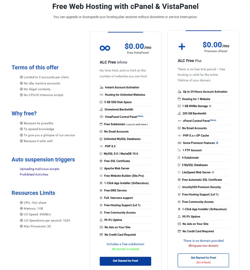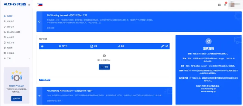 - 空间提供商:Free Website Hosting with VistaPanel and Premium cPanel – ALC Hosting Networks
