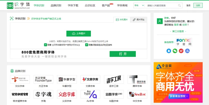 我们是否遇到在浏览一些精美图片素材的时候看到字体希望也收藏下来下次使用。或者我们希望使用某一款一样的字体不知道是否有版权还是开源商用免费。比较快速的方法还是通过工具检测到当前是哪款字体,这里我们可以直接找到在线上传图片找字体的工具,通过识别到图片中的字体,教大概率的分析出使用的哪个字体。